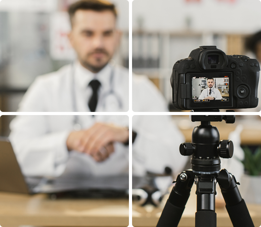 نساعدك على إنتاج مقاطع الفيديو الطبي الطويلة والقصيرة عالية الجودة في ستوديو ميديكازون المُعَد خصيصًا للأطباء.